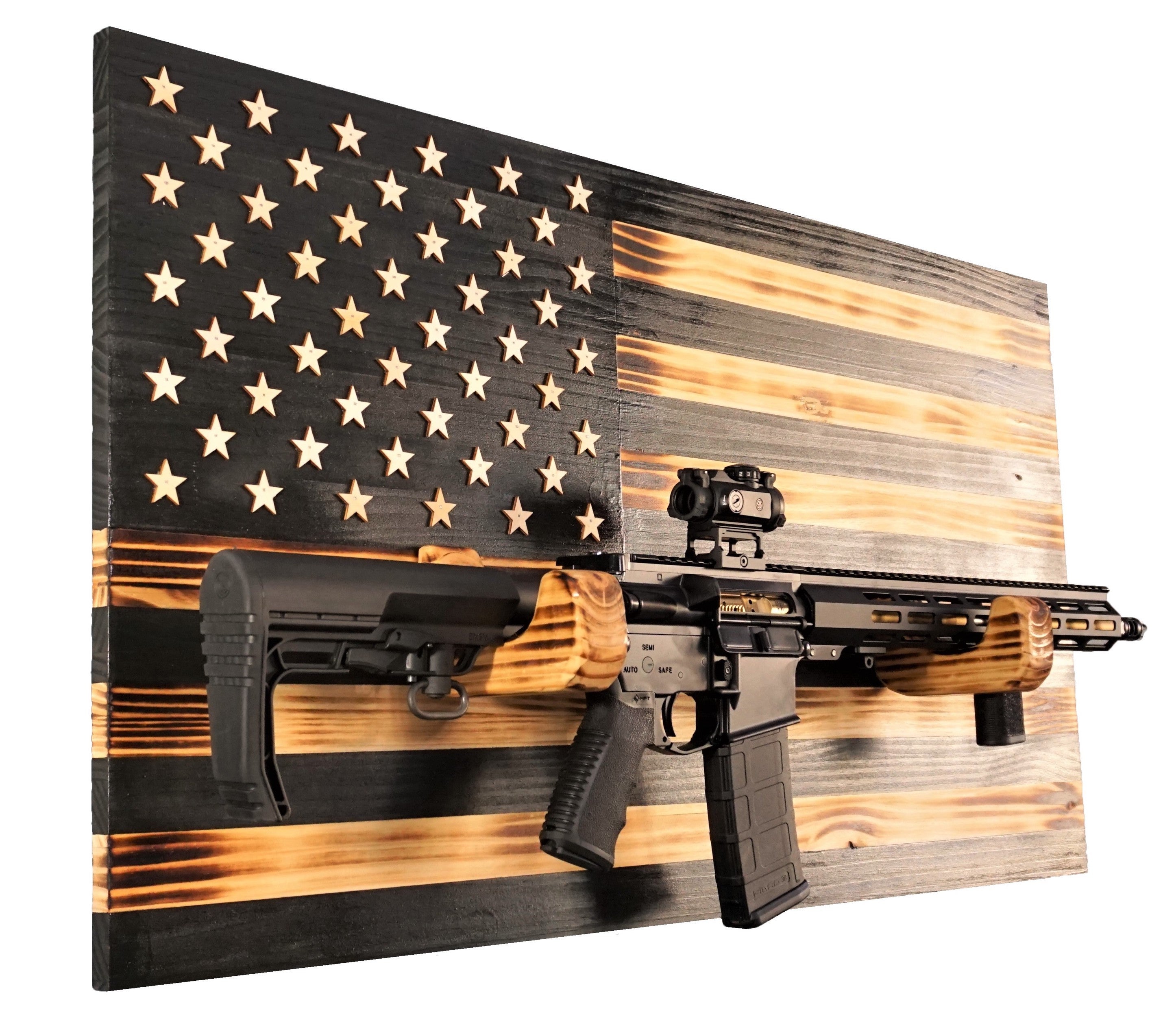 Wooden Rustic American Flag with Gun Rack Handmade 36” x 19.5” Made in the US